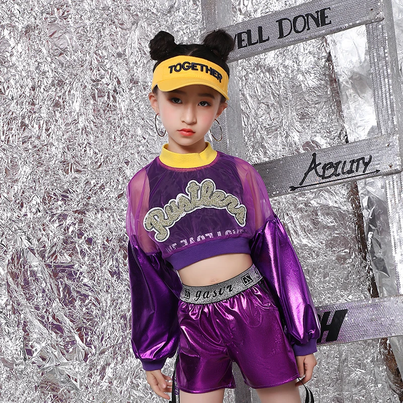Mega Sale Children Sir Dance Clothing Girl Hiphop Suit Navel Paillette Modern Dancewear