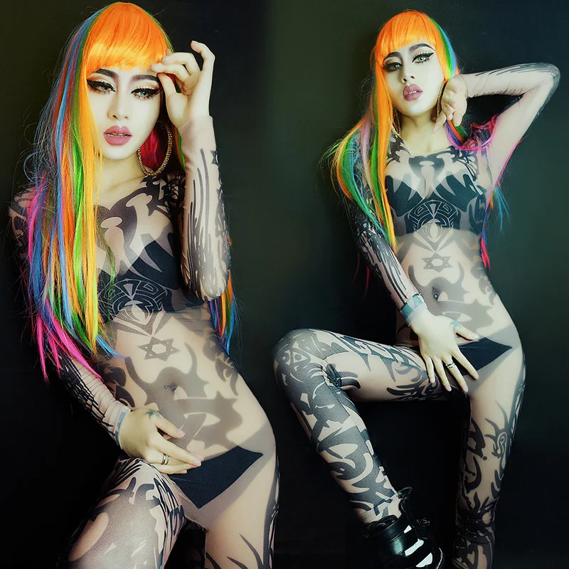 Big Discount Bar and nightclub singer jazz dance sexy dancers dance group of printed color totem stage performan