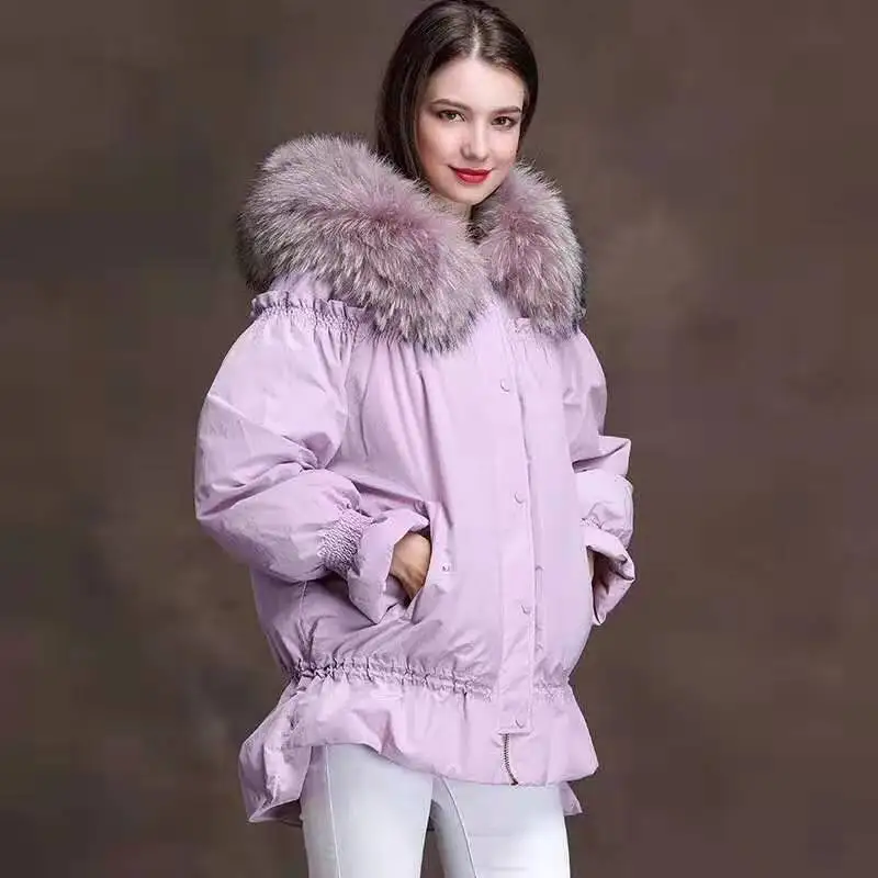 Best Sale 90% white duck down jacket tail design parka real fur hooded with real raccoon fur collar thick war