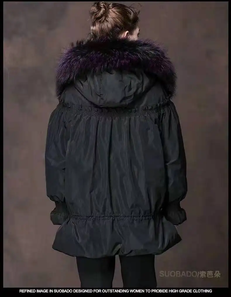 Best Offer 90% white duck down jacket tail design parka real fur hooded with real raccoon fur collar thick war