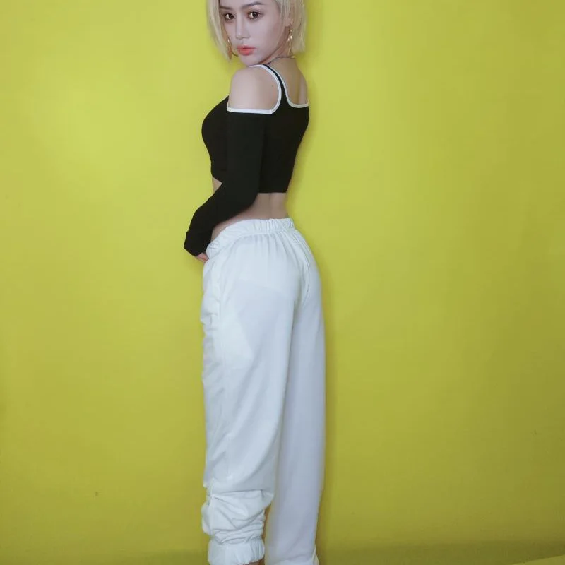 Flash Deal New Jazz Dance Costumes Nightclub DJ Female Singer Hip Hop Street Dance Clothing Strapless Tops Whi
